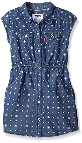 Short Sleeve button down dress Western shirt detailing with collar and 2 front chest pockets Scoop pockets at front Elastic waistband Slight hi -lo hem line Brand : Levi's Item model num : 14103 MPN(PartNumber) : 314103F-L1B EAN : 0617847721564 Product Dimensions(LxWxH) :