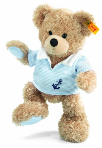 Steiff Fynn Teddybär mit T-Shirt 012297 Material: aus kuschelweichem Plüsch Farbe: beige Größe: 28 cm mit synthetischem Füllmaterial gestopft mit Kunststoffaugen waschmaschinenfest bei 30° C mit vermessingtem "Knopf im Ohr" mit CE-Zeichen made in GermanyFeature
