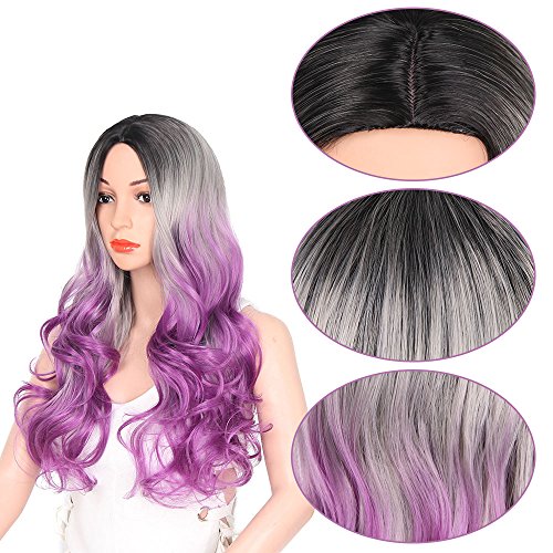 AISI HAIR Long Wavy Ombre Wig Middle Part Synthetic Wig Heat Resistant Dark Roots Three Tone Women Natural Hair Wigs