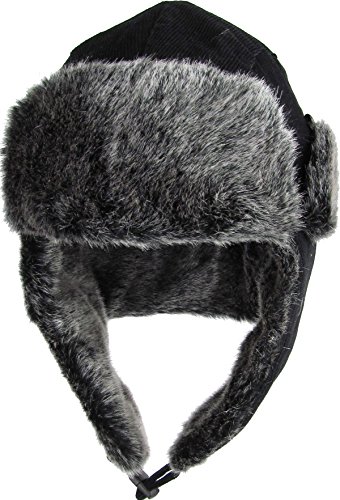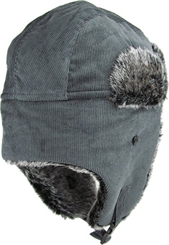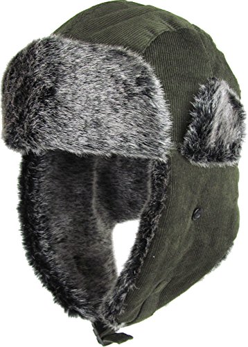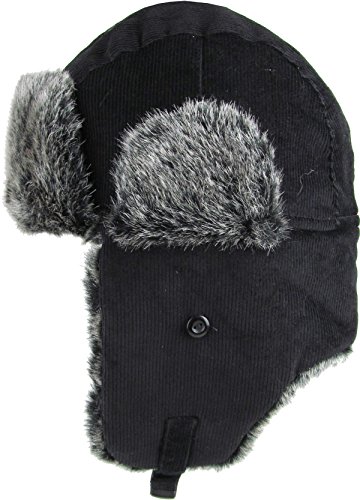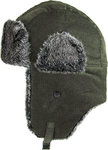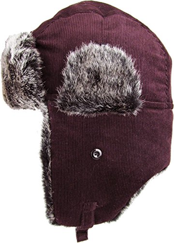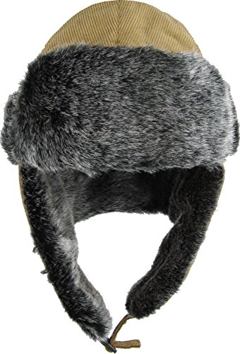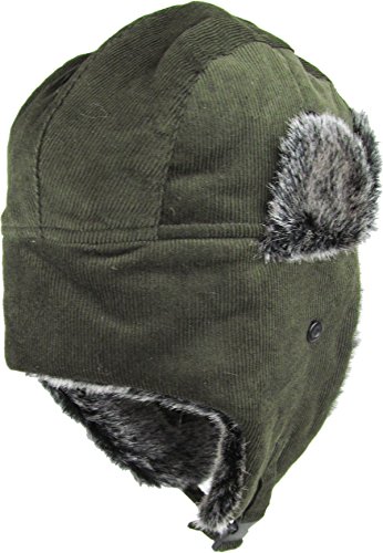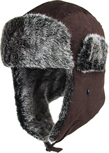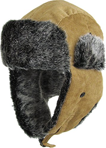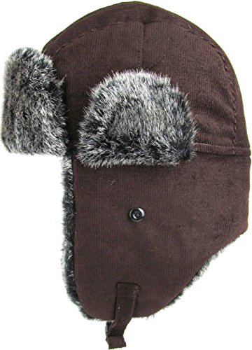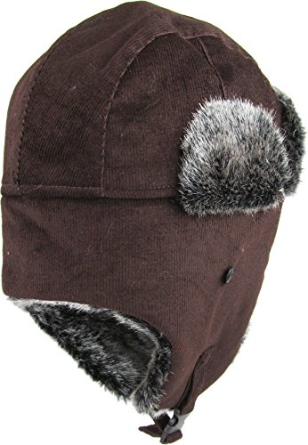 Corduroy Aviator Trooper Trapper Hat Winter Cap Warm Faux Fur