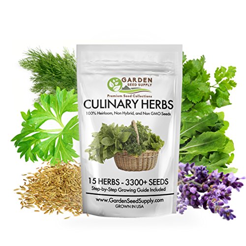 15 Culinary Herbs - Over 3300 Seeds - Non GMO Heirloom Seeds Organically Grown - Easy to Grow Gardening +FREE Grow Guide - USA Family Farm Certified Seed Company- Portion of Every Purchase to Charity