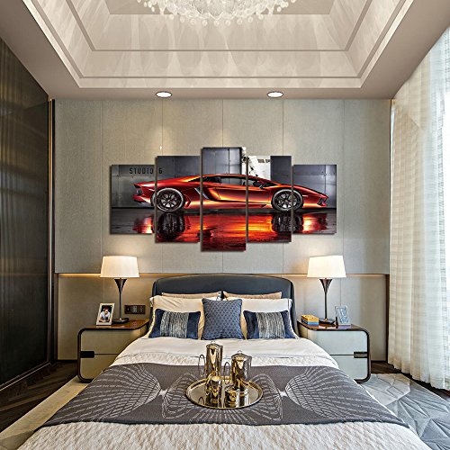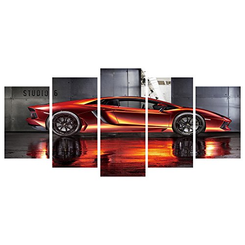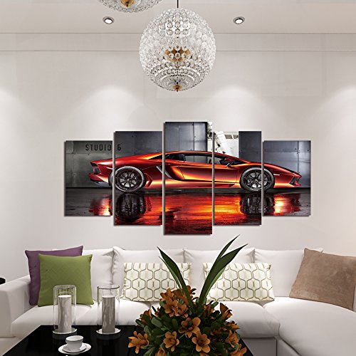 -. Title : GEVES Framed Wall Art Picture 5 Panels Cool Orange Sports Car Giclee Canvas P.R.Int Paintings for Living Room Ready to Hang Home Decor