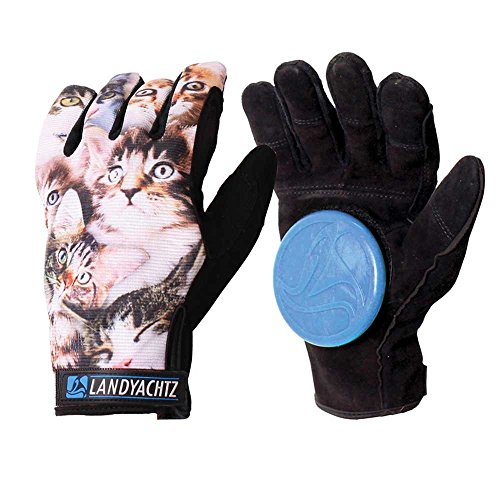 -. Brand : Landyachtz -. Feature : Specifically designed to be functional and practical. Perfect for freeriding. / Made with a mix of Kevlar, nylon and suede for light weight, durability and breathability / Double stitching in wear zones for higher durability / Replaceable slide pucks made from super durable UHMW / Choose of Size -. Label : Landyachtz -. Manufacturer : Landyachtz -. MPN : LYGC -. PartNumber : LYGC -. ProductGroup : Sports -. ProductTypeName : OUTDOOR_RECREATION_PRODUCT -. Publisher : Landyachtz -. Studio : Landyachtz -. Title : Landyachtz Freeride Cat Pattern Slide Glove with Slide Pucks
