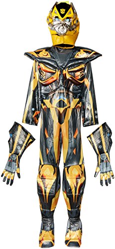 Transformers: Age of Extinction is an upcoming 2014 American science fiction action film based on the Transformers franchise. It is the fourth installment of the live-action Transformers film series and stars Mark Wahlberg in the lead role. Serving as a sequel to Transformers: Dark of the Moon, the film takes place four years after the invasion of Chicago. This Prestige Bumblebee Costume is the ultimate costume! Complete with jumpsuit with muscle torso and arms, pair of gloves, hood and character mask. There are also build-out details to give that 3D effect.Feature