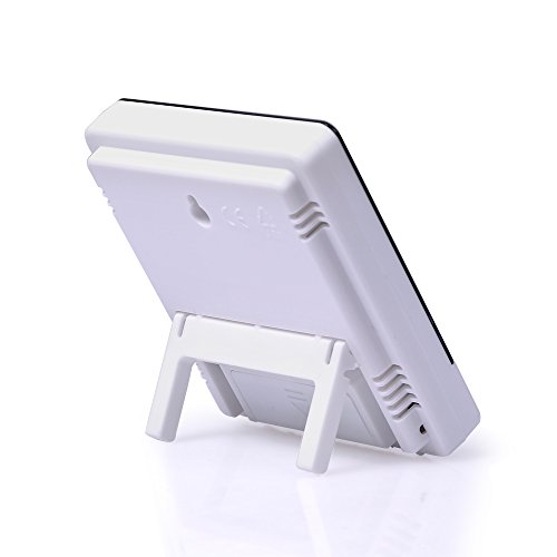 -. Feature : MULTIFUNCTION SIX-IN-ONE: Both temperature and humidity monitor; °C/°F switch; display of clock and calendar; alarm clock setting; 12/24 - hour system; the highest/lowest temperature and humidity memory function. / PRODUCT PERFORMANCE: Temperature range: 14°F ~ 122°F (-10°C ~ + 50°C); Temperature accuracy: ±1.8°F (± 1°C); Temperature display resolution: 0.2°F (±0.1°C); Humidity range: 10% ~ 99%RH; Humidity accuracy :±5%RH; Humidity display resolution: 1%RH; Suitable battery type: AAA1.5V. / SMALL AND COMPACT DESIGN: The monitor is small and light enough to put or hang it anywhere (either desk-top placing or wall hanging) in home, office and cars. / CONVENIENT AND SIMPLE OPERATION: Larger LCD display and only three buttons to adjust(MODE, ADJ, MEMORY). Please see more operation information in our manual. / RELIABLE AND FRIENDLY CUSTOMER SERVICE: We're always ready to respond within a 24-hour time frame. We assure you 30-day money back guarantee, 12-month replacement warranty and lifetime support guarantee.