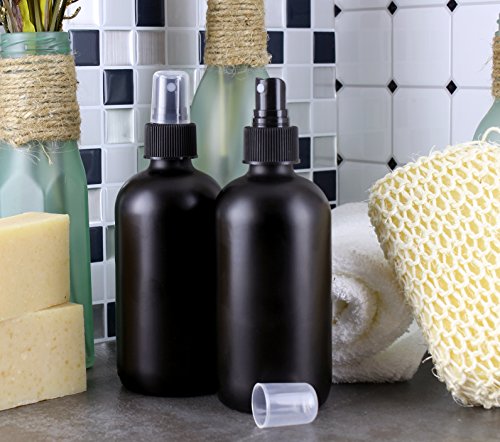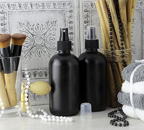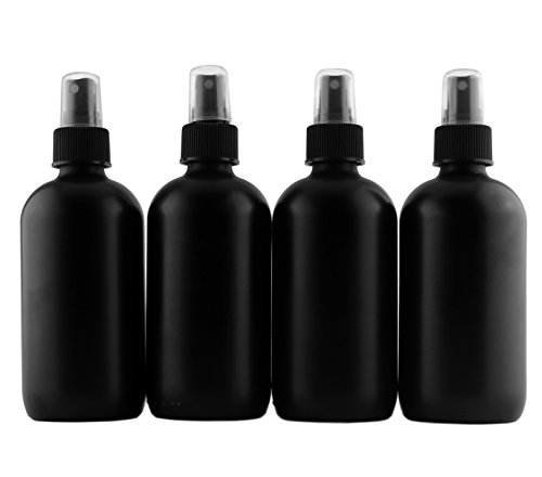 8-Ounce Black Coated Glass Bottles w/ Fine Mist Atomizer Sprayers (4-Pack); Boston Round Matte Black Bottles for Aromatherapy, DIY & More