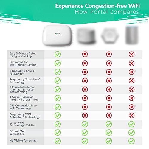 Designed for tough urban environments. WiFi devices all share the same airwaves, and just like an old highway with not enough lanes, your internet slows to crawl whenever there are too many people and devices bottle-necking the same slow channels. Crowds also crush your range and coverage. Portal uses patented technologies that give your devices more WiFi bandwidth on exclusive fast channels to avoid speed-sucking range-crushing congestion; the result, consistently fast reliable internet, lag-free gaming and smooth ultraHD video streaming anywhere in your home. And Portal works with your existing network and all your favorite WiFi devices today.