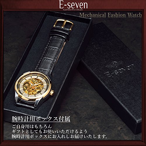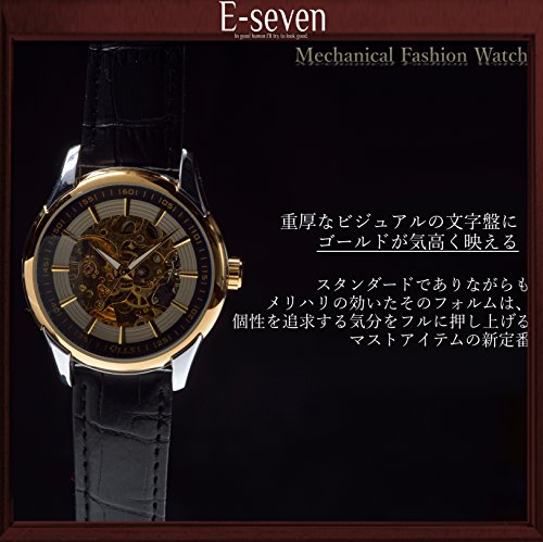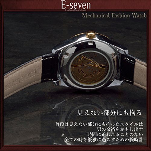 -. Title : E-seven(イーセブン) 腕時計 メンズ 自動巻き 機械式 スケルトン 本革 レザー fsgl