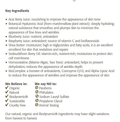 Hyaluronic acid (from marshmallow plant extract): deeply hydrating; natural substance that smoothes and plumps skin to minimize the appearance of fine lines and wrinkles