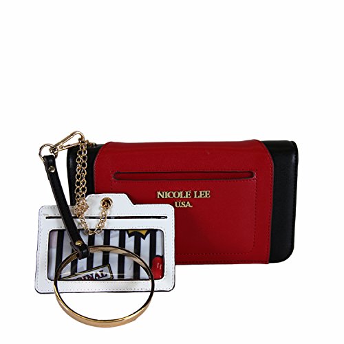 -. Binding : Apparel -. Brand : Nicole Lee -. Department : womens -. Feature : Trio Colorblock Bifold Wallet made of long-lasting Eco Leather / Have your ID ready to show with the front chain mini ID and credit card holder / Main zipper closure compartment, individual bifold button closure credit card slots feature / Interior Features: 2 ID windows, 6 credit card sleeves, 5 receipts sleeves, side zipper coin pocket with NL pop stripe logo nylon lining. / Detachable Vegan leather gold tone bracelet wristlet with 3.5" inch drop -. Model : P6406 -. PackageQuantity : 1 -. ProductGroup : Apparel -. ProductTypeName : ACCESSORY -. Size : One Size -. Title : Trio Colorblock Multiple Credit Card Slots Nicole Lee Kimetha Wallet