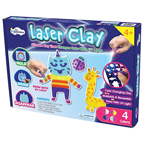 Laser Clay from I-Silicone is amazing moldable putty that changes color when exposed to ultraviolet light. Write on your putty with the included "laser" light or place clay in direct sunlight for color changing fun!