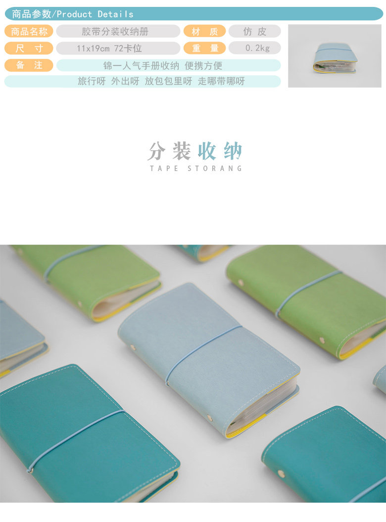 和纸胶带收纳册 日式简约手账名片册 票据袋分装板手帐周边