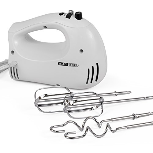 If you love to bake, this hand mixer will prove indispensable. Perfect for beating eggs, sugar and milk for a bread pudding custard or whipping that perfect cream to top that special dessert. In addition to the beaters, hooks are included as well for when you knead yeast dough. Your choice of five speeds provides great flexibility in getting the consistency just the way you like it. An aspiring baker will find this an excellent addition their appliance collection.Feature