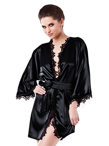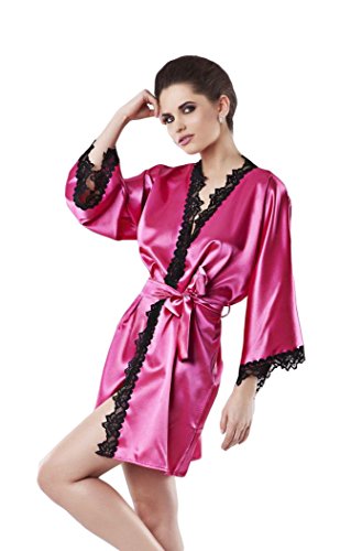 Product DescriptionElegant ladies dressing-gown made of satin. Front and sleeves decorated with lace. Incredibly soft and comfortable to wear.0