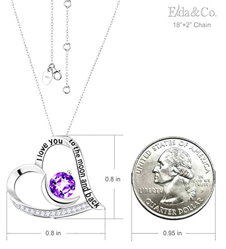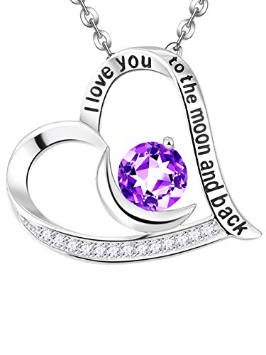 superior quality, 18K white gold plated over sterling silver, this delicate Natural Amethyst February Birthstone Love Heart Moon pendant Necklace and 20" rolo chain will never let you down.