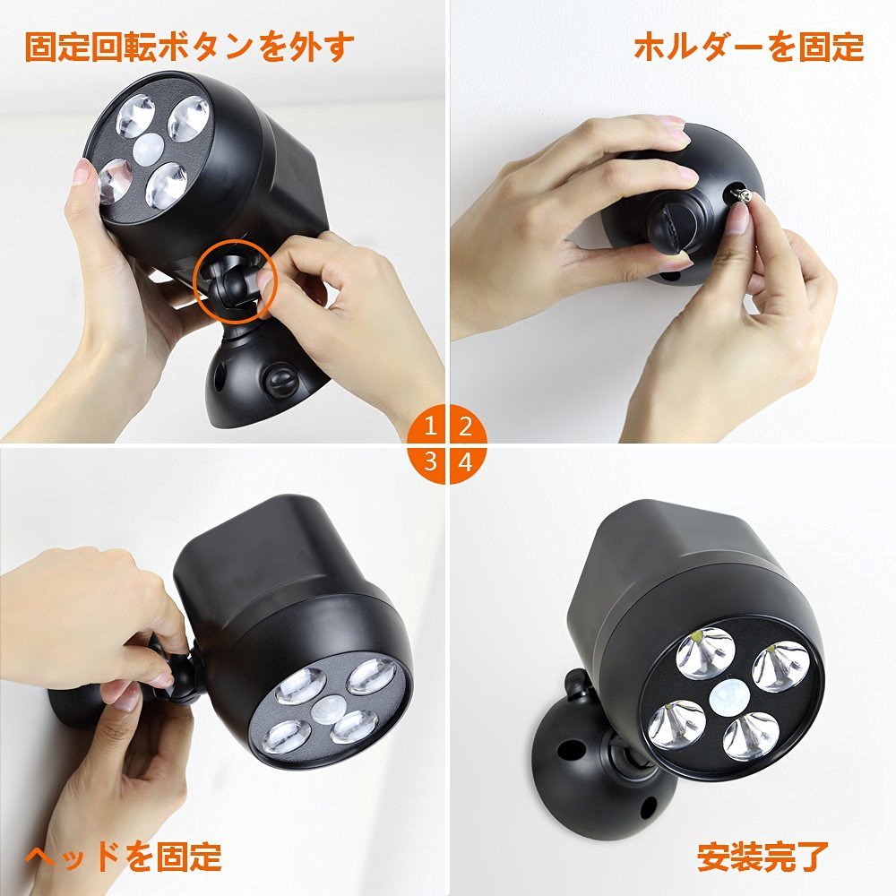 This LED sensor light can rotate 360 degrees horizontally.