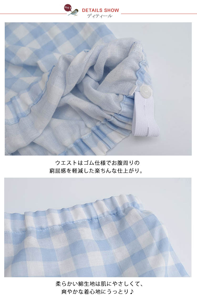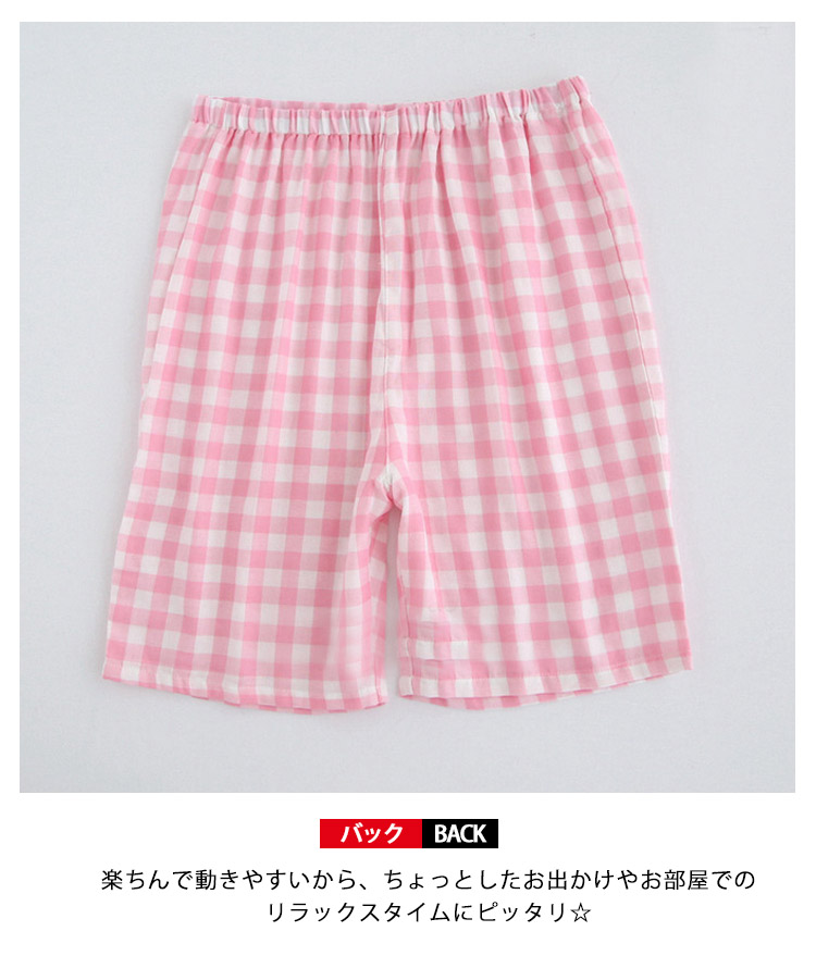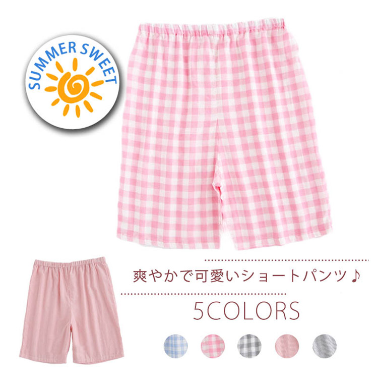 | 爽やかで可愛いショートパンツ♪楽ちんで動きやすいから、ちょっとしたお出かけやお部屋でのリラックスタイムにピッタリ☆ウエストゴムで腰回りもゆったりしており、伸縮性、吸汗性に優れているので、季節を問わず快適に過ごせます。 | |