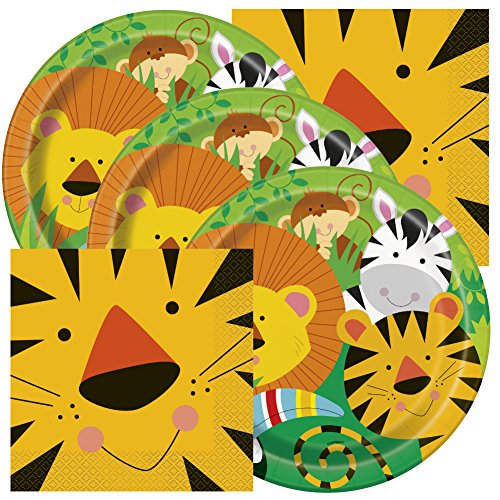 Jungle Animals Themed Birthday Party Napkins and Plates (Serves 16)