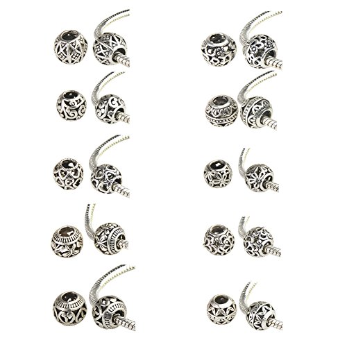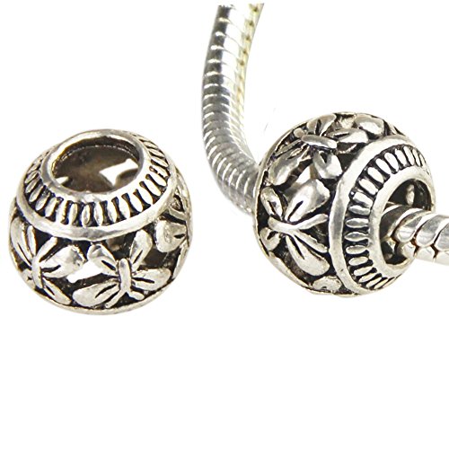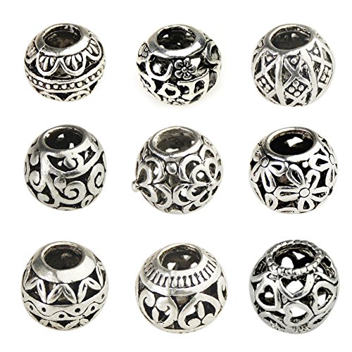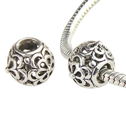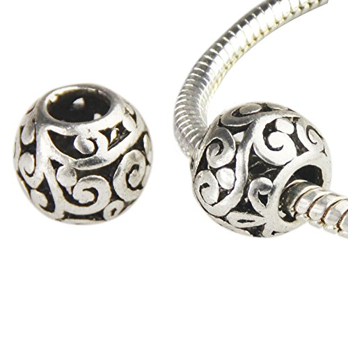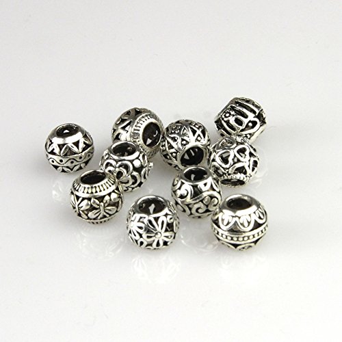 Bingcute 20Pcs Silver Tone Spacer Loose Beads Hollow filigree Tibetan beads
