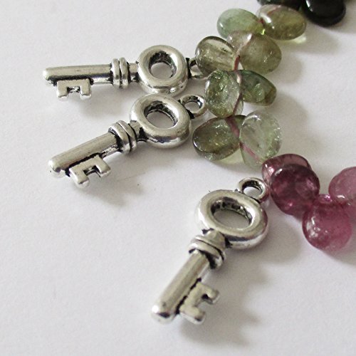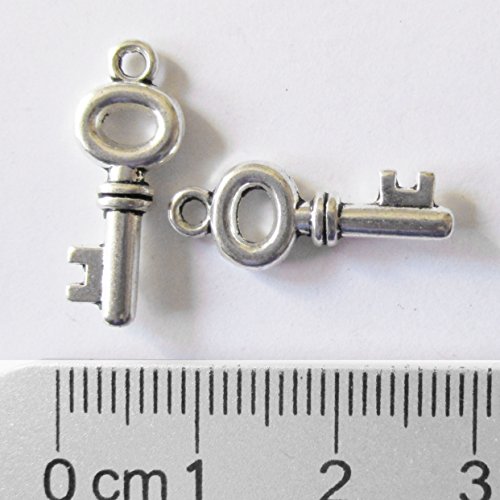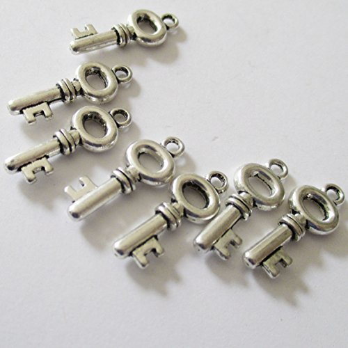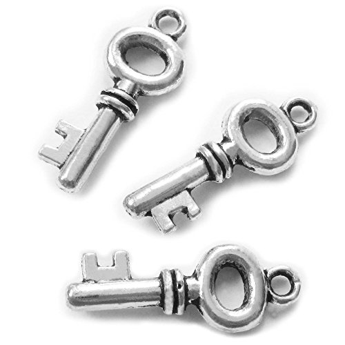 Key and Lock (75Pieces Silver Tone-Small Key-Beads DIY Charms Pendants-20X8mm)