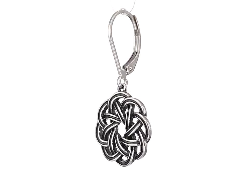 Sterling Silver Oxidized Celtic Knot Lever-Back Drop Earrings