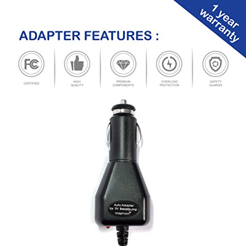 Maymom 9 Volt Car Charger for Medela Pump in Style Advanced Breast Pump; FCC Approved, Replaces Part # 67174