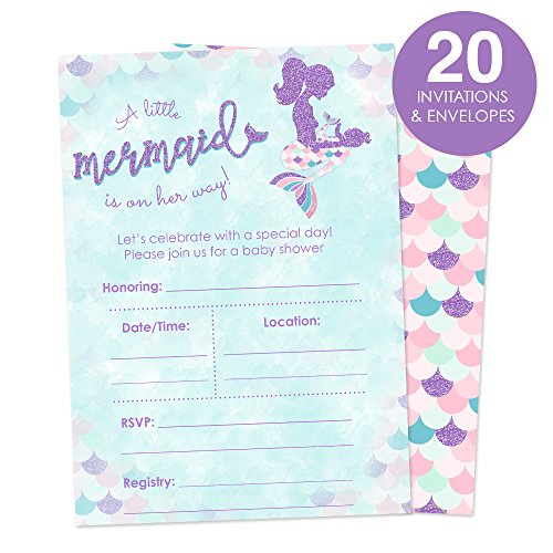Mermaid Baby Shower Invitations for A Girl Fill In Style 20 Count - A Little Mermaid is On The Way