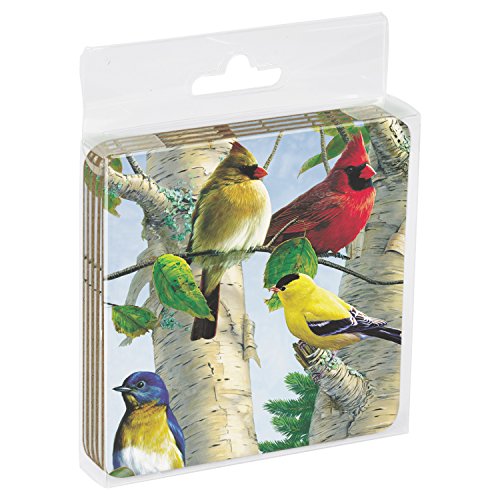 Tree-Free Greetings ECO Coasters Box Set of 4 Drink Coasters, 3.5 x 3.5 Inch, Favorite Songbirds (EC52507)