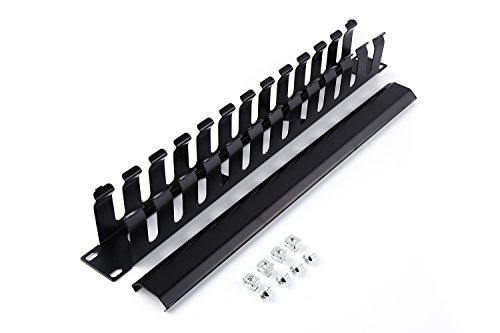 All Metal - No Plastic-Much Stronger - 1U 19 Inch Server Rack Wire Management System - Rack Mount Horizontal Cable management with mounting screws 12 large slot Cable Manager Finger Duct with Cover