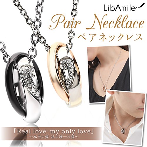 -. Title : LibAmile(リブアマイル) 2点セット ペアネックレス リングネックレス キュービックジルコニア ブラック×ピンクゴールド 記念日 プレゼント ジュエリーポーチつき セット