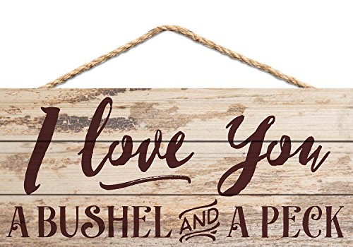 Love You a Bushel and a Peck Distressed Look 5 x 10 Wood Plank Design Hanging Sign