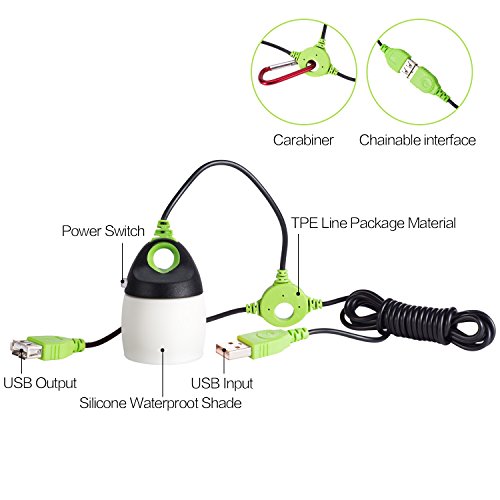 -. Feature : ADJUSTABLE & BRIGHTNESS.Adjustable lighting mode with simple switch,show with 110 lumens and durable lighting,soft light is not dazzling which can guardian sleep for you. / WATERPROOF & CHAINABLE.Keep working normally no matter in the rain or fall into the water. Makes it a safe or emergency light for fishing,hiking and picnic.USB input and USB output can easily connect with the other same light. / MINI-PORTABLE & DROP-RESISTANT.Lightweight with mini-body that you can be brought easily at any time when you came out,with flexible silicone shade,it shows very strong and durable. / RECHARGEABLE & Support all USB port power supply, readily available, low-power operation, small power more durable light source. / IDEAL FOR OUTDOOR ACTIVITY:This light is specially designed for outdoor camping, hiking, cycling, fishing, diving, boating and other exploring and emergency.