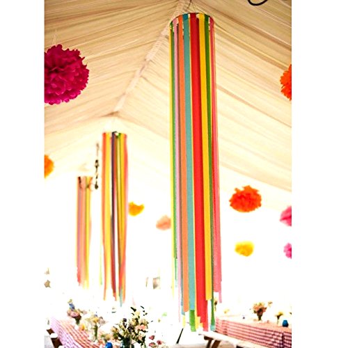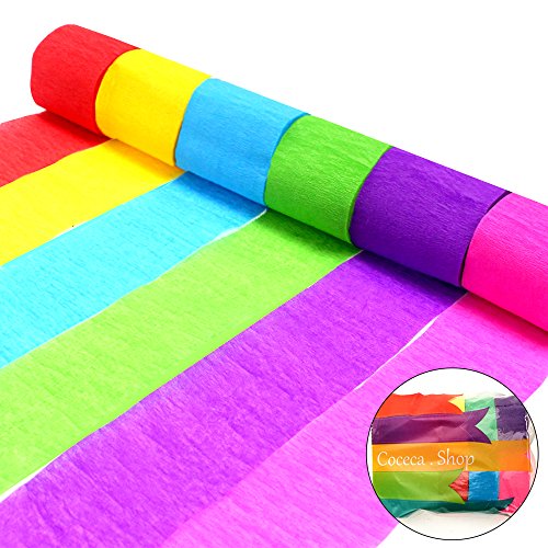 -. Feature : Package contains 24 rolls of Crepe Paper Streamers in 6 colors / Color: blue, green, red, yellow, pink and purple / Size: width - 4.5cm, length - 9M / Each roll of paper is neatly bundled, easy to unlock and easy to hang. With bright and saturated color; Suitable for any DIY handicrafts, such as decorating your bedroom and so on. / This set of elegant paper streamers is ideal for a variety of themed parties, birthday parties, summer parties and babyshowers, Christmas parties and festive queues, etc