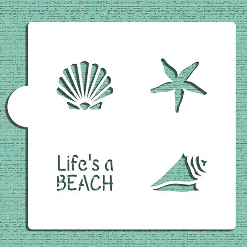 Studio : Designer Stencils Publisher : Designer Stencils Product Description Get ready for fun in the sun with our shell and Life's A Beach variety stencil. Use it for your cookies, note cards and crafts. It is precision laser cut from our durable, 10 mil, food grade plastic so it holds up to repeated use, textural products and airbrushing. Use for all your cake and cookie projects because it is food grade plastic but also durable for all types of craft projects using paint, brushes, textures, etc. for fantastic professional results. Size of pattern is: 1-1.5"H x 1-1.5"W Stencil plastic, not including thumb hold is: 5.5 inches high x 5.5 inches wide. 0