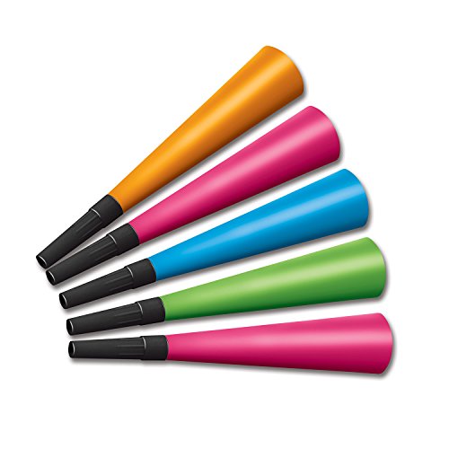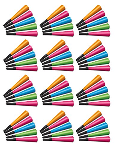 - Includes 100 horns in package; assorted neon colors of blue, green, Orange and pink; Sorry, specific colors can not be chosen