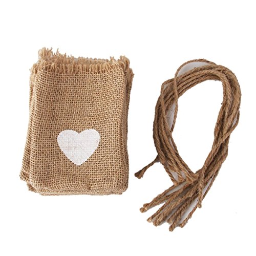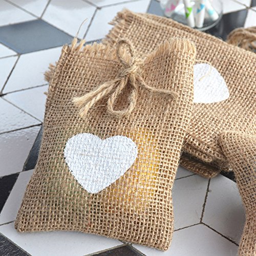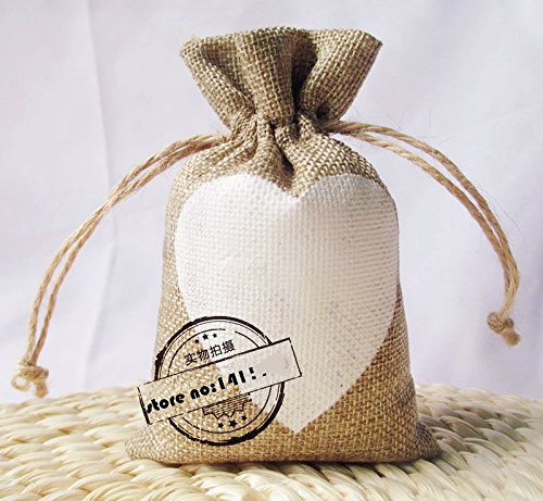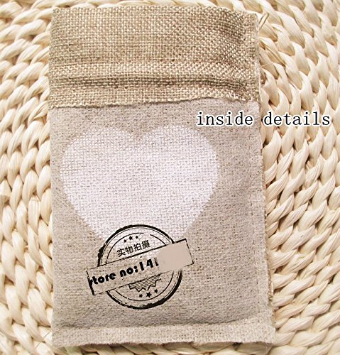 50pcs White Love Heart Print Wedding Decoration Packaging Jute Gift Bag