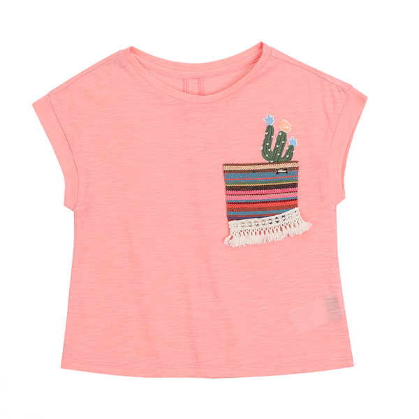 상 세 설 명-포켓쪽에 선인장프린트와 배색포켓으로 에스닉한 느낌을 더해주는 티셔츠로 뒷판의 트임도있어 편하게 입을수있는 스타일의 티셔츠.