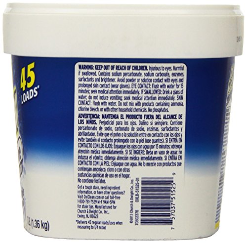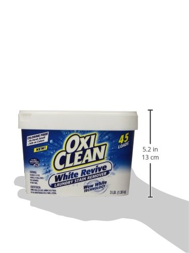 ReleaseDate : 2015-01-20 Studio : Church Dwight - Personal Care Publisher : Church Dwight - Personal Care Binding : Health and Beauty Product Description OxiClean White Revive is a laundry stain remover powder that does not contain chlorine bleach and has a fresh scent. OxiClean works with your detergent to break down stain molecules on your fibers, allowing them to be carried away in the wash and leaving your clothes whiter and brighter. It's tough on stains but safe for use on white and colorfast washables. For best results, pre-soak tough stains or dingy whites in accordance with package directions. 0
