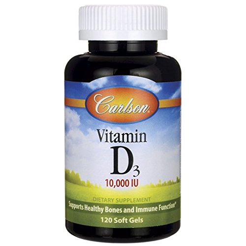 Carlson Vitamin D3 10,000 IU is the preferred form of vitamin D that's important for promoting strong bones, supporting immune system health, and helping to regulate calcium and phosphorus metabolism. Higher levels of vitamin D3 in the blood are associated with strong bones and good health, as well as a strong immune system. Each soft gel provides 10,000 IU of vitamin D3.Feature
