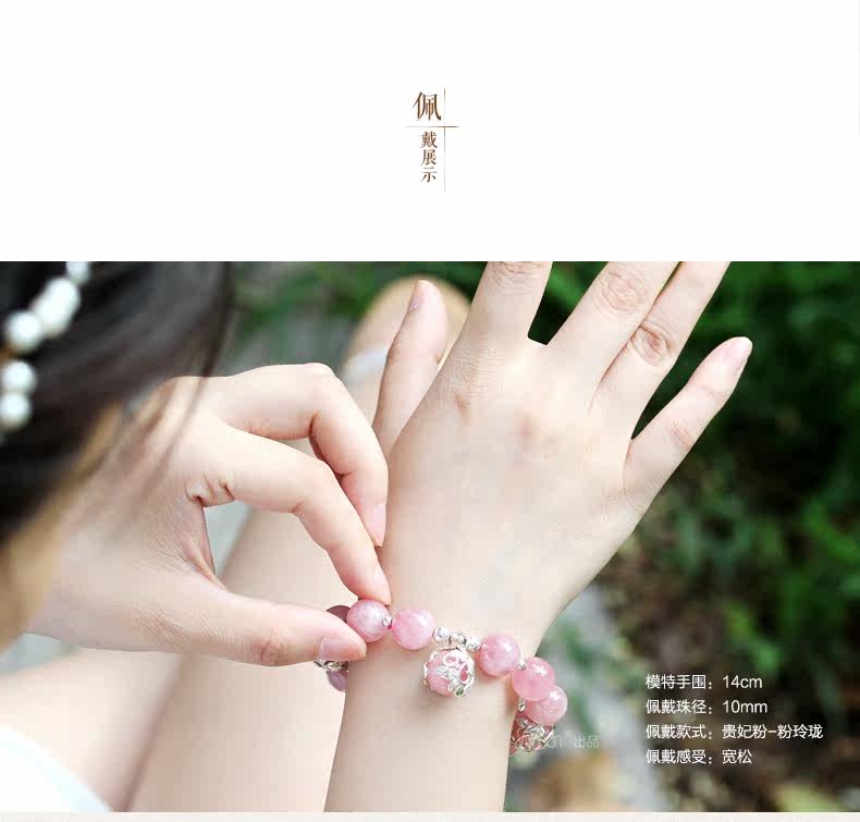 VunSun天然粉水晶手链女款 单圈冰种粉晶手串女925银粉嫩甜美饰品