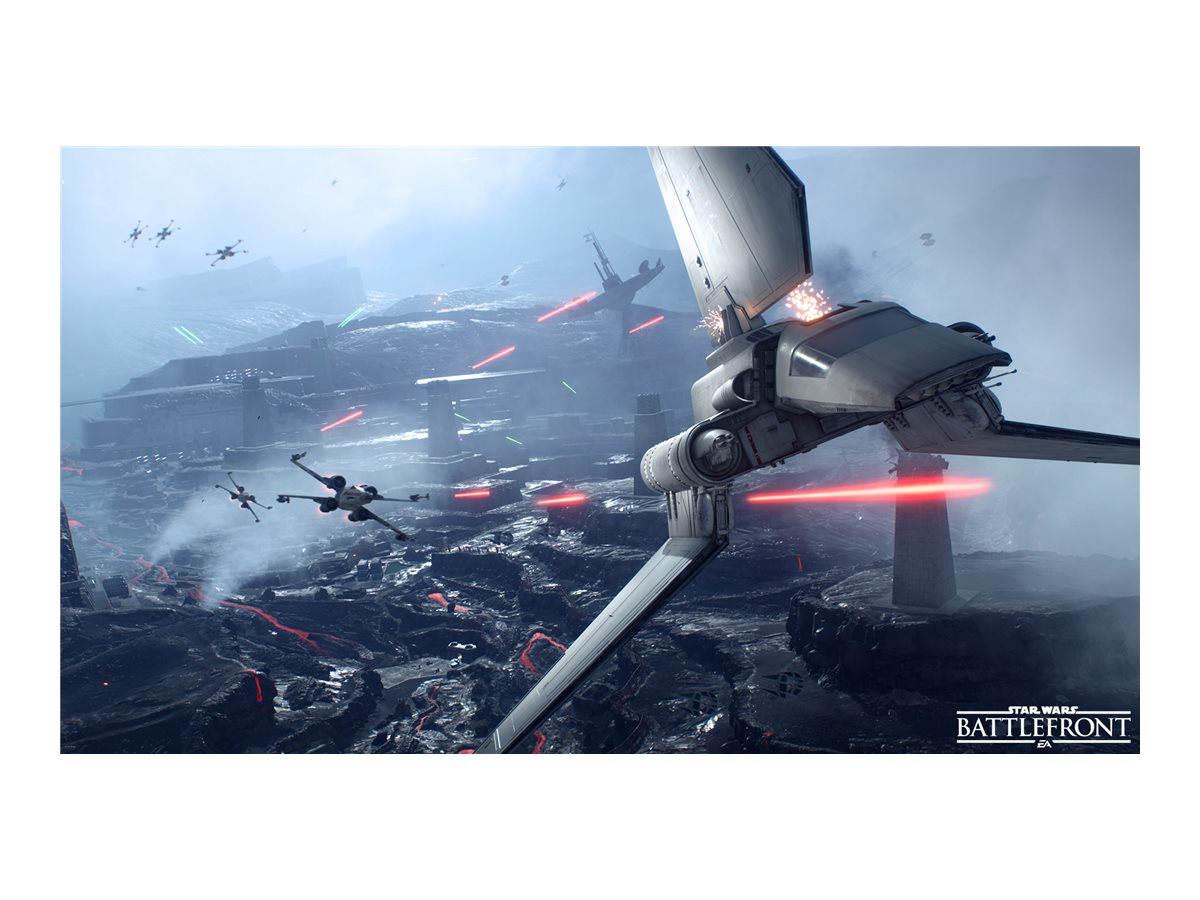 Feel the ominous thud of an AT-AT stomping down on the frozen tundra of Hoth. Zip through the lush forests of Endor on an Imperial speeder bike while dodging incoming blaster fire. Engage in intense dogfights as squadrons of X-wings and TIE fighters fill the skies. Immerse yourself in the epic Star Wars battles youve always dreamed of and create new heroic moments of your own in Star Wars Battlefront.