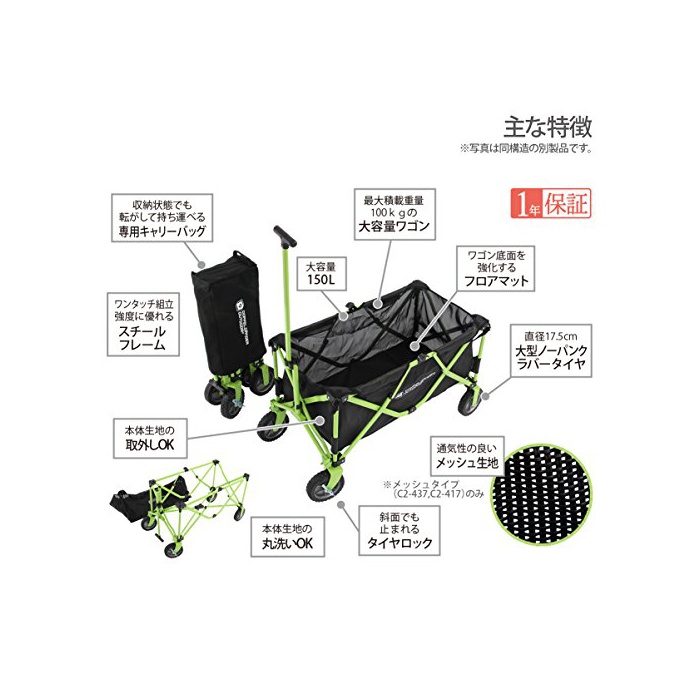 원본상품명: DOPPELGANGER(ドッペルギャンガ)アウトドア キャリワゴン 【全パツ交換&カスタム可/容量150L/丸洗いメッシュ】 1年保