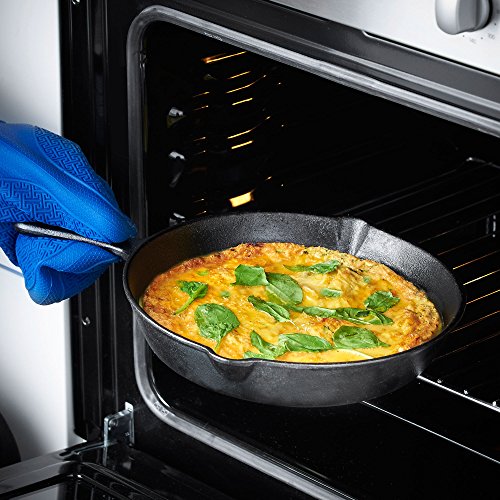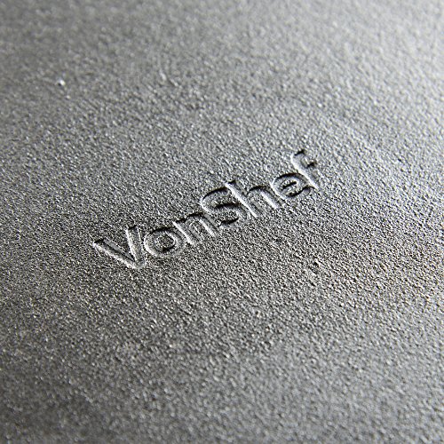 Made from pre-seasoned cast iron, the VonShef skillet pan is non-stick. The seasoning process involves baking vegetable oil on to the surface at a high temperature, creating a naturally non-stick surface, without the need for a chemical coating.