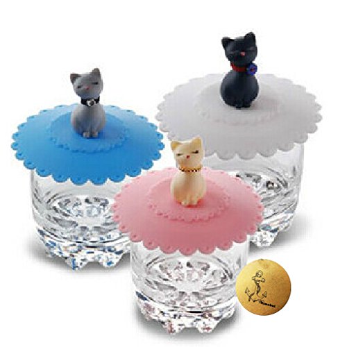 Rimobul 3 pcs Lovely Cats Lid Watertight Silicone Cup Lid Cover Mug Cap Block dust Leakproof Lid (Cat)