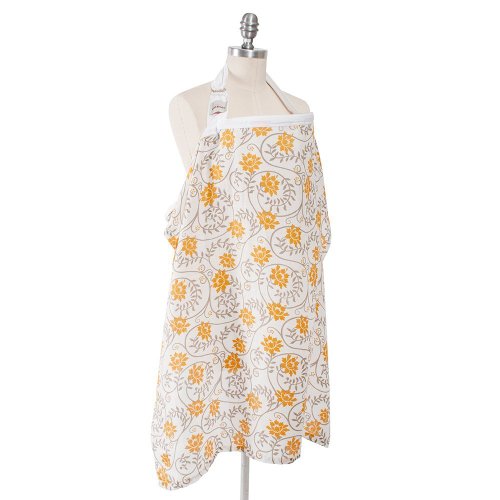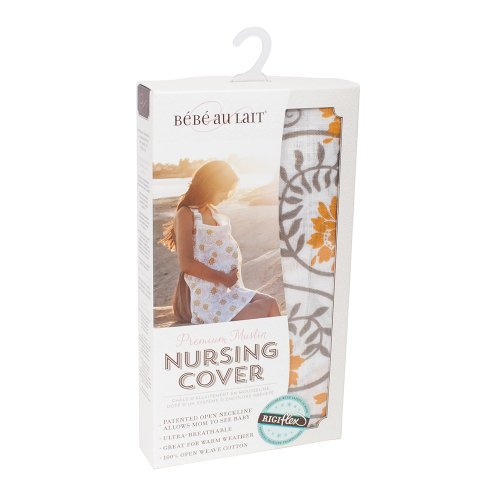 The Bebe au Lait Premium Muslin Nursing Cover is one of the lightest covers on the market with a 100% open-weave cotton muslin composition. Our nursing covers help maintain privacy and comfort while nursing on the go, especially during those warm summer months when you need a breathable material to stay cool. This breastfeeding cover has a patented Rigiflex open neckline that holds the cover away from mom and baby, which allows them to maintain eye contact and continue the important bond during breastfeeding. The neckline features a patented Interlocking Cap System that prevents sharp boning material from breaking through the ends, making it more durable and protective than the competition. The open neckline also ensures proper air flow and allows mom to see that baby is properly latched, encouraging breastfeeding success. The neck strap is secure and adjustable to hold the cover in place, so you can breastfeed with confidence no matter where you are. Soleil is inspired by a warm, summer day with an intricate pattern of gold and taupe flowers. The Bebe au Lait Premium Muslin Nursing Cover is machine washable, so it's always clean and ready to go when you need it. Bebe au Lait's award-winning nursing covers have been a favorite of celebrities and breastfeeding mom's since 2004. Bebe au Lait is committed to creating products that families love, whether it’s for bath time, mealtime, or on the go. All Bebe au Lait products are made of the highest quality materials and tested to meet international safety standards. Designed by parents for parents, Bebe au Lait is the practical and luxurious choice that mom’s reach for first.