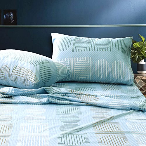 Essina Queen Bed Sheet Set 4pc Areni Collection, 100% Cotton 620 thread count, Deep Pocket Queen Fitted Sheet , Asti Blue
