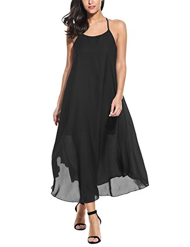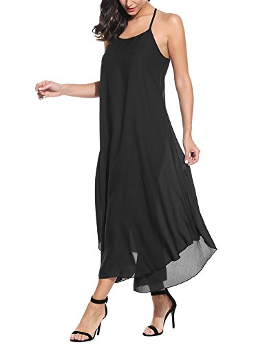 Casual Sleeveless O-Neck Strappy Maxi Beach Dress with Lining