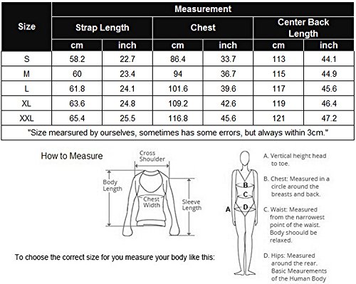 Specifications: Please check your measurements to make sure the item fits before ordering. 1. Use similar clothing to compare with the size. 2. Choose larger sizes if your size are same as the flat measurement Size chart. *Size S-------Bust 33.7"-------Strap Length 22.7"-------Length 44.1" *Size M-------Bust 36.7"-------Strap Length 23.4"-------Length 44.9" *Size L--------Bust 39.6"-------Strap Length 24.1"-------Length 45.6" *Size XL------Bust 42.6"-------Strap Length 24.8"-------Length 46.4" *Size XXL-----Bust 45.6"-------Strap Length 25.5"-------Length 47.2"Feature