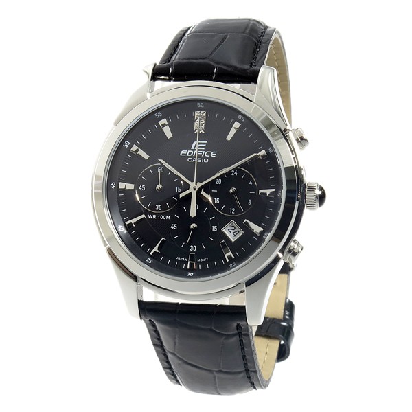 カシオ CASIO エディフィス EDIFICE クロノグラフ クオーツ メンズ 腕時計 ウォッチ ブラック  商品仕様:(約)H40×W40×D11mm(ラグ、リューズは除く)、重さ(約)76g、腕周り最大(約)19.5cm、最小(約)15.5cm ステンレス(ケース)、レザー(ベルト) 専用BOX、保証書、取扱説明書