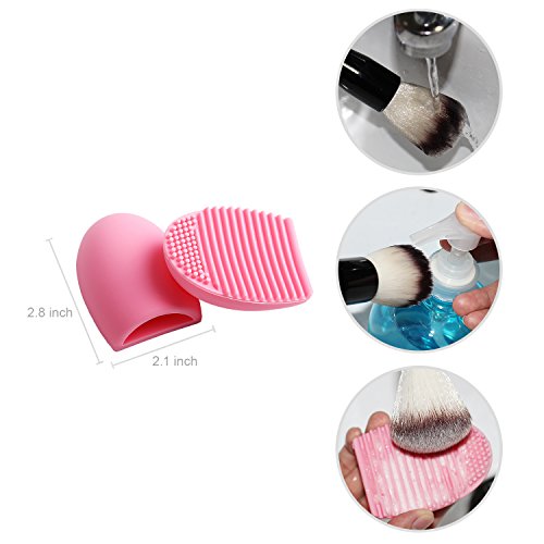 Brush scrubber board: 2.8 inches long and 2.1 inches wide, made with high quality silicone. It cleans bristles very thoroughly, and it's perfect for various makeup brushes. It won't ruin their shape and fits well in your makeup bag.